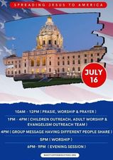 We are invited to release the Joy of the LORD this Saturday, July 16, through Spirit led dance ministry at 7 pm. Below please find the full schedule for the revival from 10am-10pm on Saturday and come take part in as much as you are able! If you are unable to come, prayer covering is always appreciated!