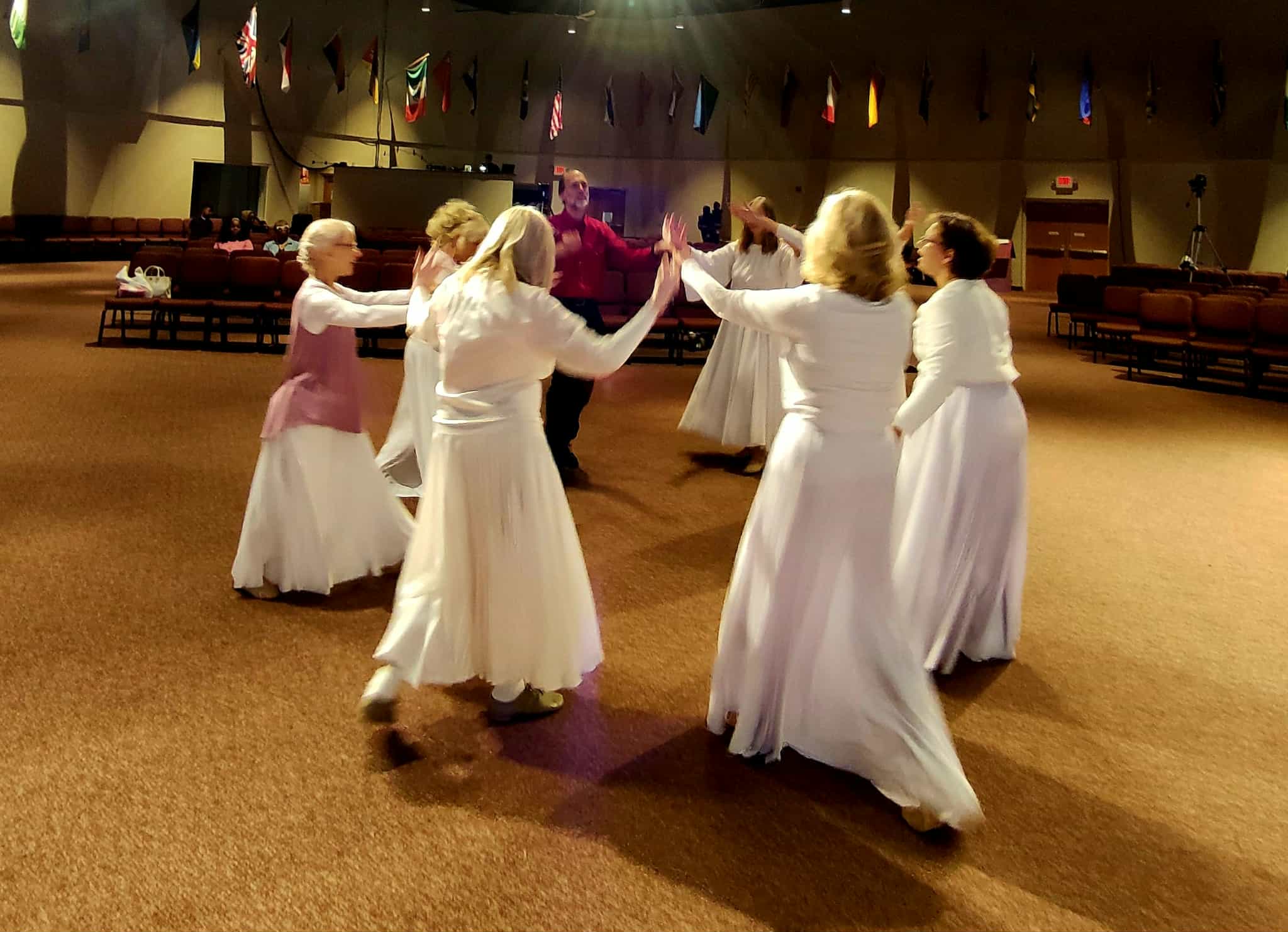 WHAT TO WEAR: Please wear WHITE/WHITE for the gals and WHITE/BLACK for the guys. We will provide skirts or overlays for females, as well as accessories for all. Females please wear modest, all white tops and pants/capris/culottes (white leggings or tights are fine for those under 12). Males please wear white tops (can be white buttoned shirt) and black bottoms. We have a few extras, but not enough for everyone. 🙂 Nude/flesh colored dance shoes or going barefoot is fine.